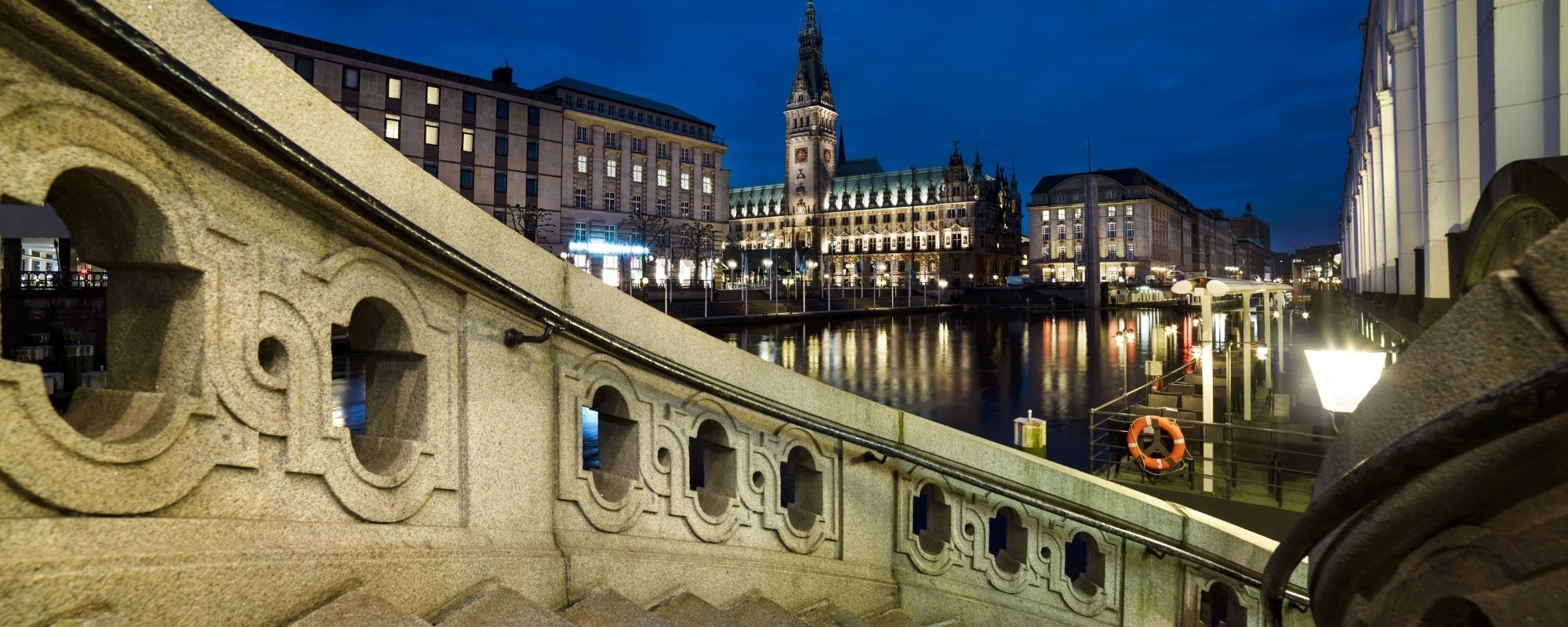 Hamburg – Blick auf die Binnenalster. Knapp 1,8 Millionen Menschen leben in der norddeutschen Hafen-Metropole. Viele treffen Sie hier.
